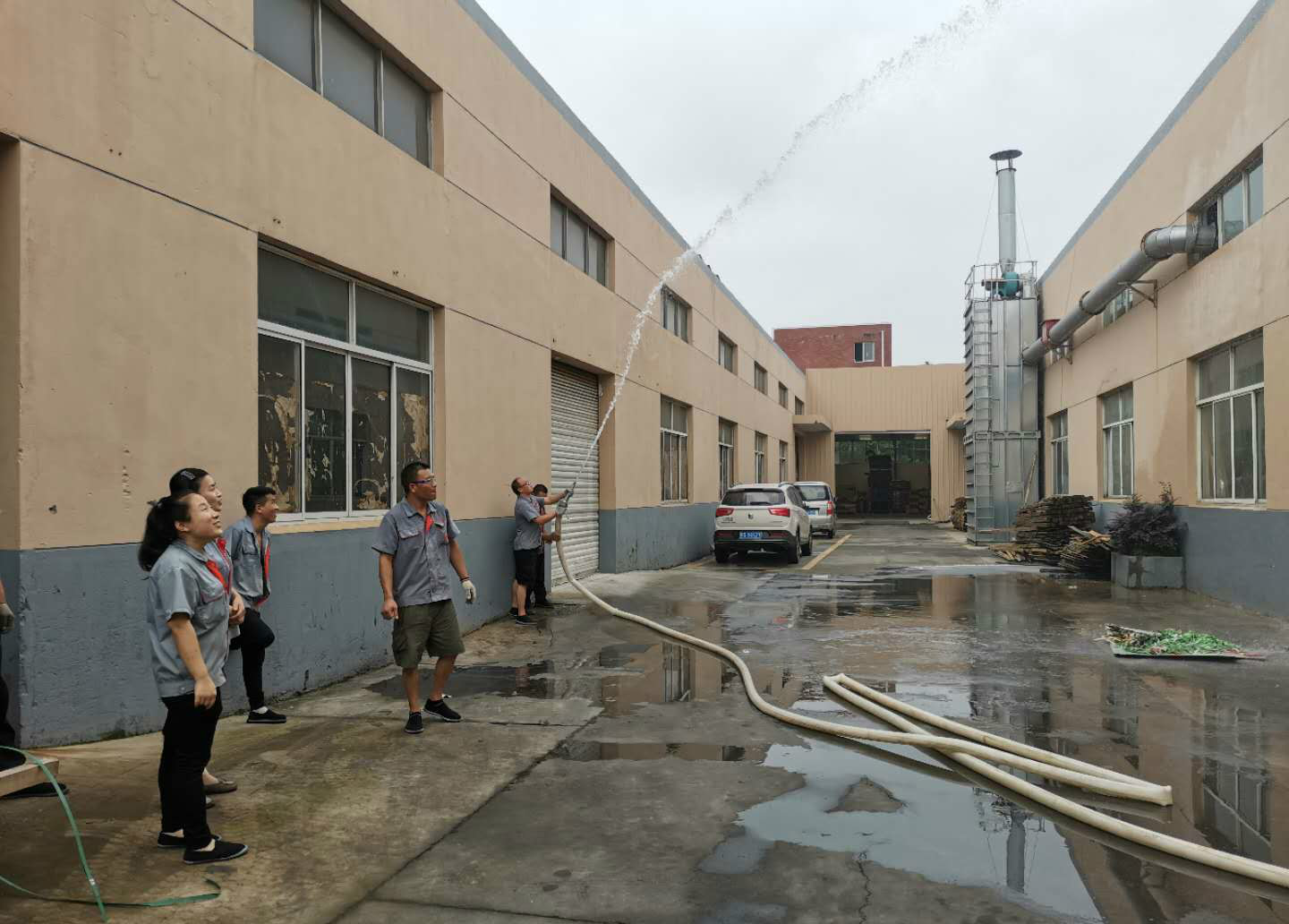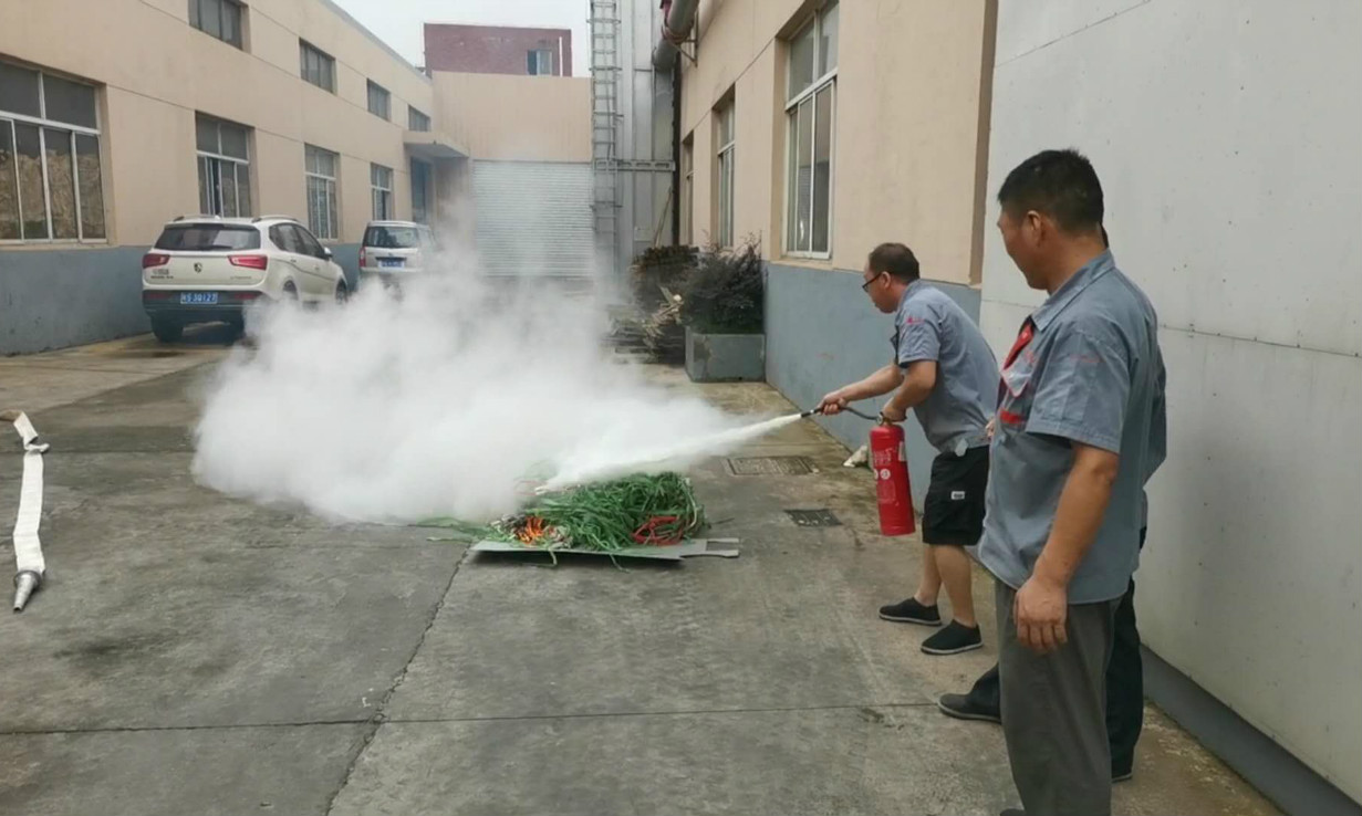 下午1點無錫市太行木業有限公司全員準時在會議室開始學習消防知識,呂總一再強調,天天嚴檢消防器材,月月做到實戰演習,把生命放在第一位。發現廠房里的安全隱患如何第一時間處理,線路老化、高空作業、安全用電等,同時給大家講解了一旦發生火災如何自救逃生。大家一起去到車間里,檢查各個電路是否有問題,講解滅火器如何使用,并現場演示了消防器材如何安裝使用,這時外面響起了警報聲,原來外面有火情(其實是呂總提前安排好的火堆),員工們趕緊用毛巾捂住口鼻,彎腰沿著墻邊跑了出去,其中幾名員工去拿了滅火器,另外幾名員工趕緊安裝好消防水管并合力拉出去滅火,幾分鐘時間火苗就撲滅了,大家互相看了看,都不知不覺笑了起來,領導也漏出了滿意的笑容。